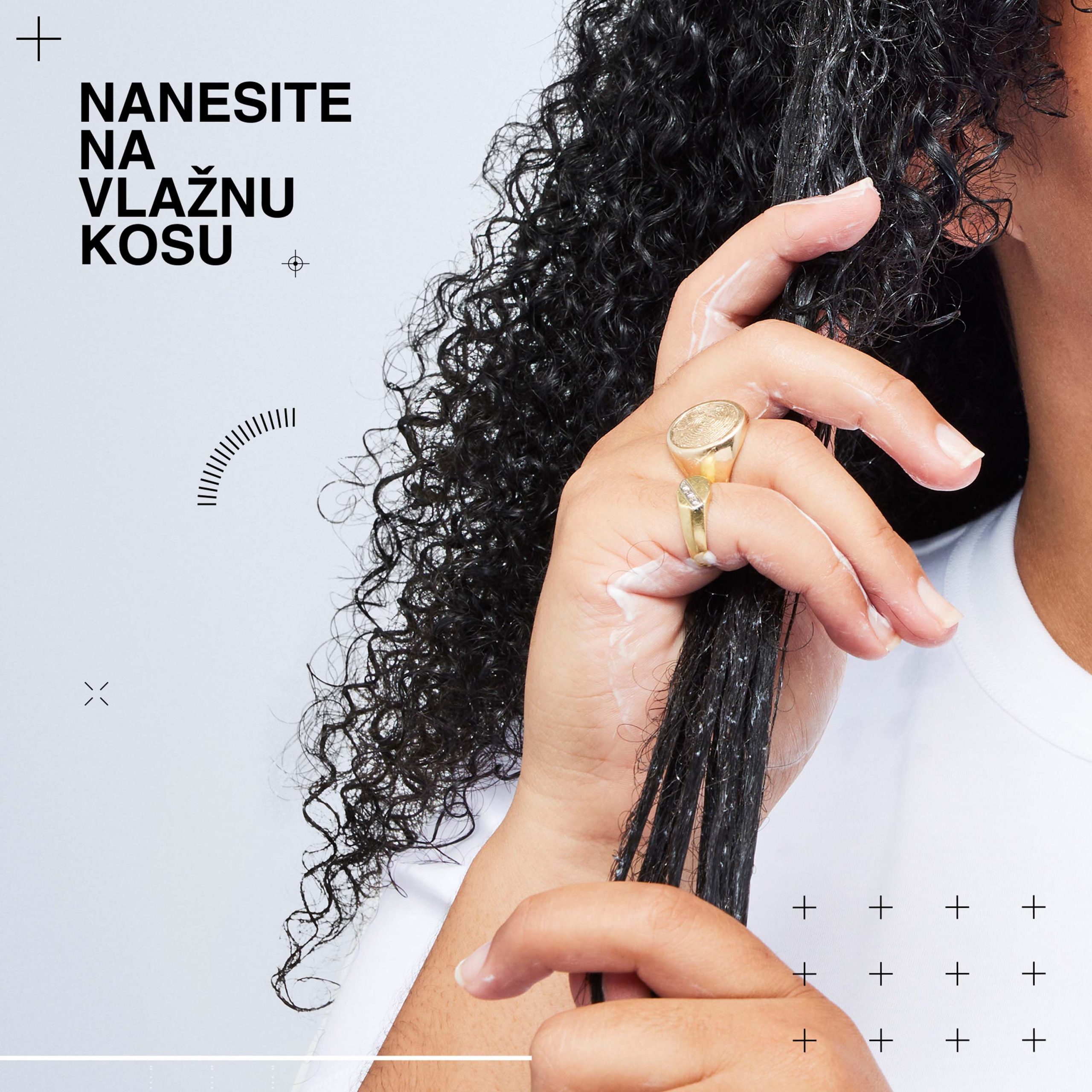 Upotreba: Nanesite na dlanove i protrljajte među njima, a zatim ravnomerno nanesite u sekcije vlažne kose do krajeva. Stilizujte po želji. Može da se nanese ponovo na suvu kosu kako bi se ukrotila kovrdžavost, ponovo definisale kovrdže i dodala hidratacija. U slučaju kontakta sa očima, odmah ih temeljno isperite.